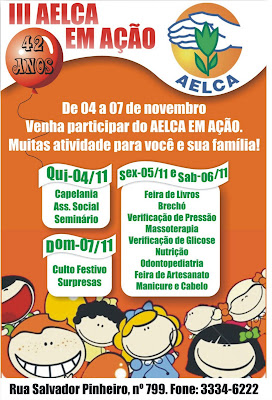 III AELCA em ação Finalmente chegou o momento deste grande evento da AELCA. Tempo de celebrar nossos 42 anos de atividades. Confira os nossos convites abaixo: