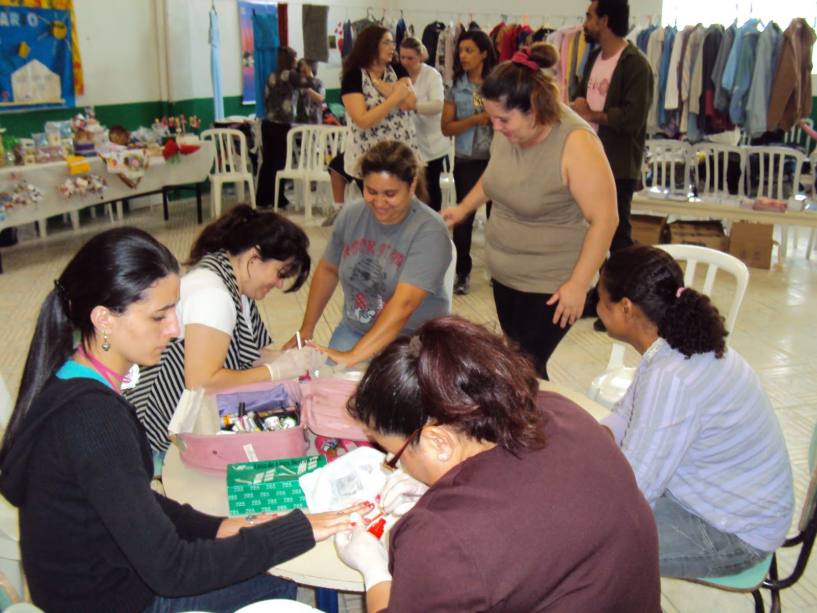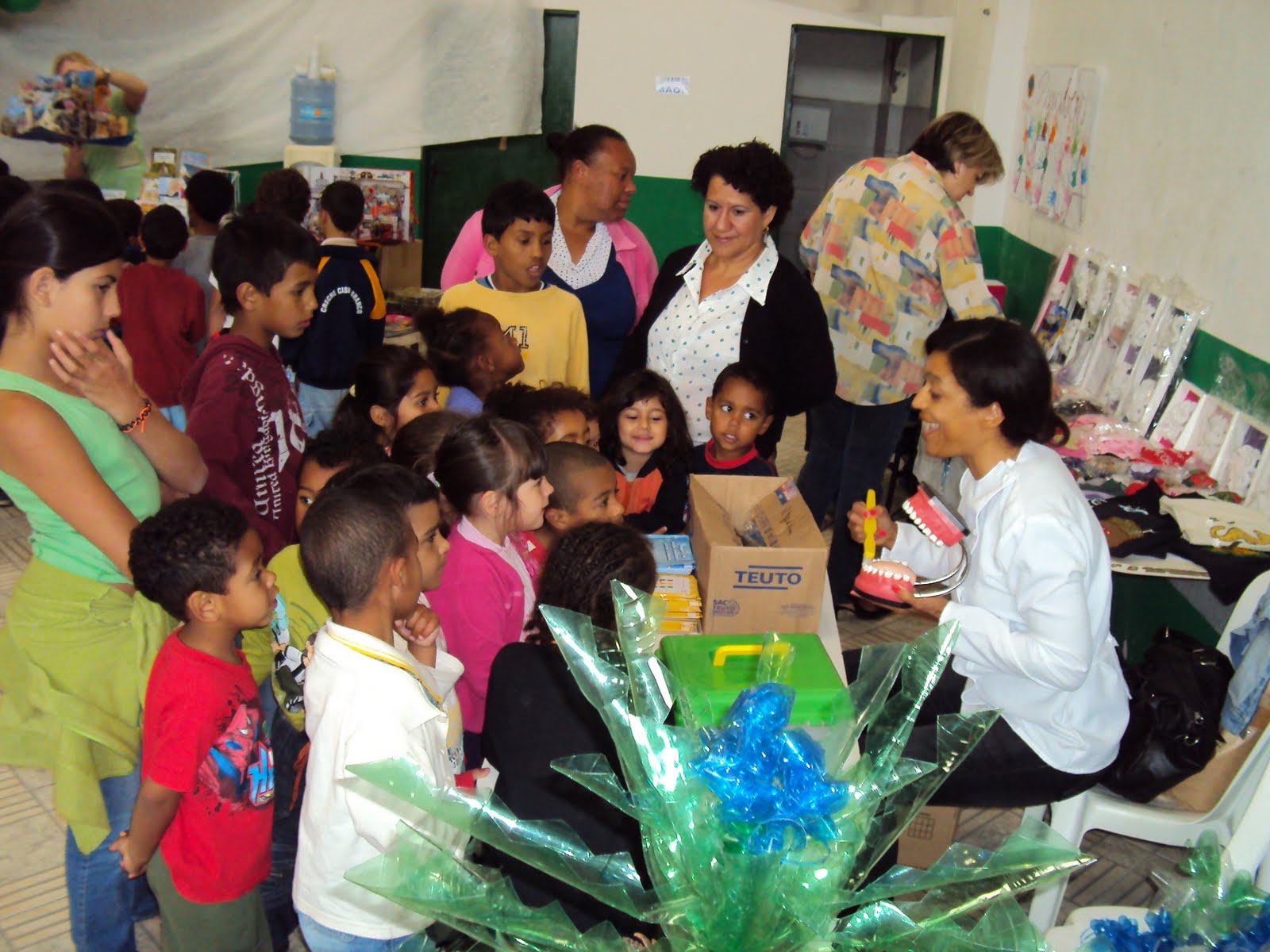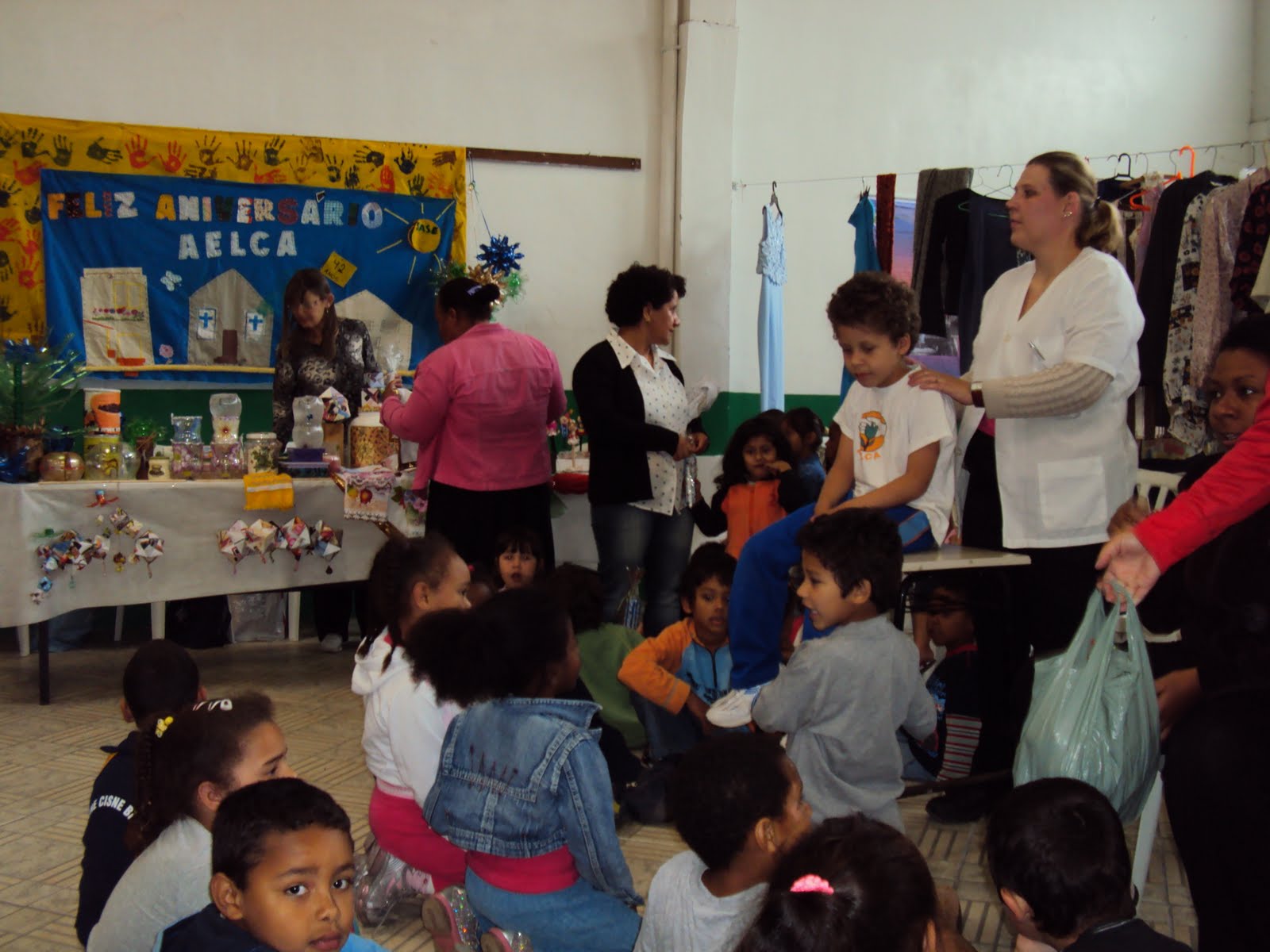 Em parceira com os Postos de Saúde SESC e Barão de Bargé foi ofertado medição de pressão, noções de escovação e de alimentação saudável. Também a Massoterapeuta Andréia dedicou seu dia ofertando massagens a adultos e crianças que a procuraram. Também, apoiados pela ONG Parceiros Voluntários, as crianças tiveram a oportunidade de se colorir e deixar a alegria de ser criança ainda mais evidente. Tudo isso com muita pintura de Pés e mãos feitas com muito carinho por nossas parcerias. Paralelamente a tudo isso a AELCA disponibilizou para a comunidade, com a ajuda da Dna Leocádia Stolte, a abertura de nosso brechó. Roupas e diversos utensílios foram ofertados a comunidade, a partir de doações que a AELCA recebeu. Veja.