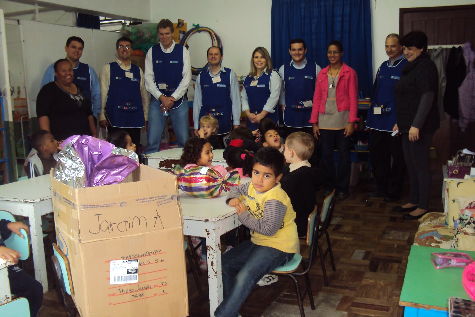 Neste ano estamos construindo uma parceria muito positiva com a THYSSENKRUPP ELEVADORES. A empresa, num belo despreendimento social, oportuniza aos seus colaboradores a oportunidade de servir na AELCA. Através de recreação e informática nossas crianças tem tido uma experiência impar. Recebem carinho e afeto, conhecem outros amigos e, tem diante de si, “espelhos” positivos, que lhes abrem perspectivas na forma de exempplo. Sem citar nomes agradecemos a todos os colaboradores que se uniram a nós nesta tarefa de fazer o bem. Que Deus abençoe a todos e a empresa nesta missão tão nobre de oportunizar perspectivas às nossas crianças e adolescentes. Dentre as atividades gradecemos muito a colaboração de todos para que, neste dia das crianças, cada uma ganhasse um brinquedo, conforme seu pedido. Confiram algumas, das muitas fotos de ativdades realizadas.