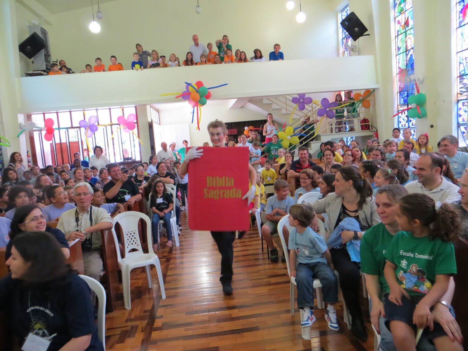 A AELCA participou dia 21/10 do Congresso Mirim – Do Distrito Portoalegrense da Igreja Evangélica Luterana do Brasil, na Comunidade da Cruz -Petrópolis. Esta Comunidade é parceira da AELCA. O momento foi muito importante e lembrado com alegria e carinho pelas crianças que participaram. Agradecemos à Escola Dominical/DIPA pela oportunidade. Também registramos nossa gratidão à Congregação da Cruz e sua Escola Dominical.Agradecemos também aos pais que levaram seus filhos até a AELCA, para, sob os cuidados da Liliane Dresch, se deslocarem até o local do Congresso. Certamente, a partir desse encontro, nossas crianças cresceram no conhecimento bíblico e de que Jesus é a rocha firme que sustenta nossa vida. A Bíblia viva que vemos numa das fotos foi construida pelo Carlos Henrique Weber, nosso “Quique” e ganhou vida na interpretação do Samuel, da CEL Concórdia. Confiram as fotos, gentilmente cedidas pelo Sr. Valdir A. V. Mühlen, membro da CELC.