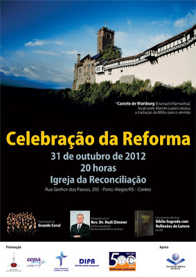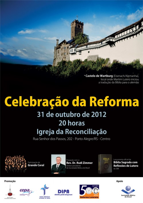 A AELCA partilha dos pensamentos oriundos da Reforma da Igreja no sec XVI. Por isso valoriza tanto a Palavra de Deus em seu meio, a familia, criança, a educação e o trabalho social. Neste 31 de outubro celebramos juntos esta data que marcou a restauração da boa notícia de que somos amados por Deus, perdoados pela sua graça mediante a fé em Jesus Cristo. Estamos a 5 anos da comemoração dos 500 anos deste evento importantíssimo para a vida de fé no mundo. Abaixo colocamos como convite, o cartaz/convite para a celebração da Reforma em Porto Alegre. Ela será celebrada conjuntamente pelas Igrejas Luteranas: Igreja Evangélica Luterana do Brasil e a Igreja Evangélica de Confissão Luterana no Brasil. Confira e participe. Junto ao convite também a Bíblia com anotações de Lutero.