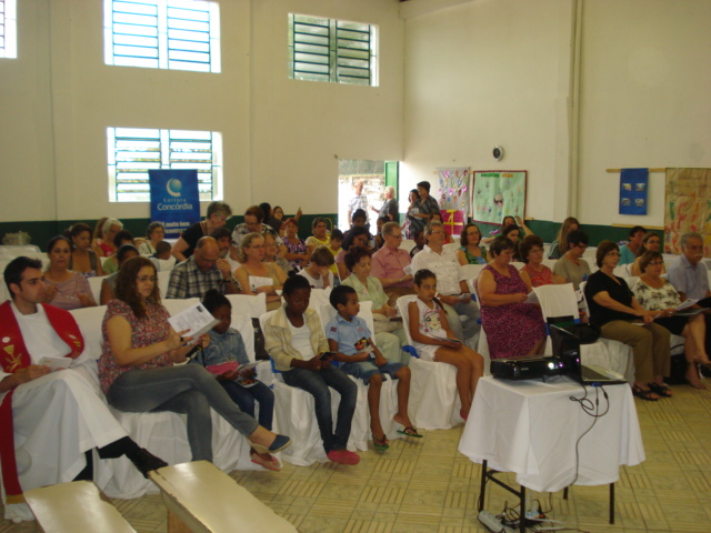 Começou domingo, 11/11 a comemoração dos 44 anos de atividades da AELCA. Fundada em 10/11/1968, a AELCA parou para agradecer a Deus pela sua existência e trabalho realizado. As 10h tivemos culto com pregação do Pr Otto Neitzel, participação de crianças e do Coral da Comunidade da Cruz. Para todos, nosso muito obrigado. Participaram do culto cerca de 100 pessoas, dentre estas membros da Comunidade Da Cruz e outras, famílias apadrinhadas pela Ação Social da Comunidade da Cruz, comunidade local e funcionários. Os funcionários presentes, receberam da Presidente da AELCA, Sra. Leocádia Stolte, um certificado de Honra ao Mérito, como expressão de gratidão pela dedicação com as nossas crianças. Também, com apoio da Sociedade Bíblica do Brasil, foram presenteados com Bíblia Pobreza e Justiça, o Pr Otto e o Coral da Cruz, na pessoa do seu Regente,Sr. Abner Elpino Campos. O culto teve a presença de 87 pessoas. Após, foi servido almoço. Nosso agradecimento aos presentes e a Editora Concórdia e Sociedade Bíblica do Brasil, que nos forneceram material evangelístico para a ocasião. Confira algumas fotos desta atividade.