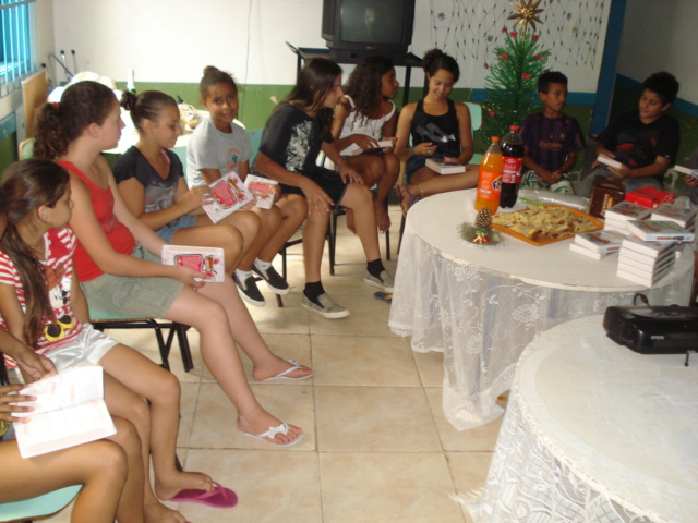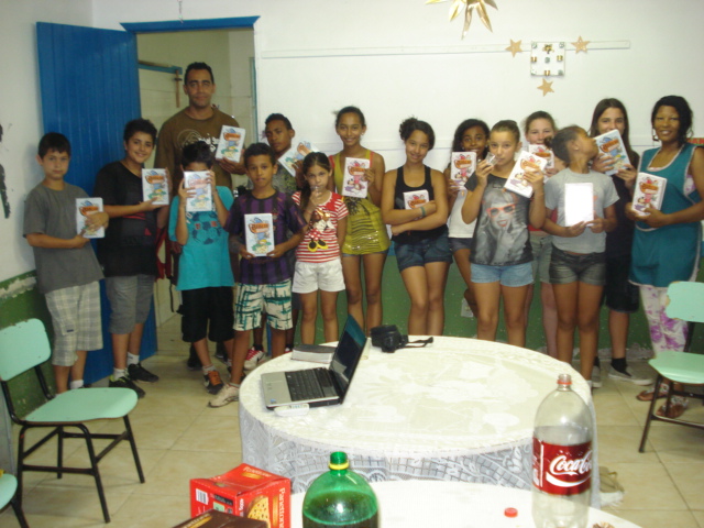 Após um trabalho com a Bíblia, aonde os adolescentes de 10-14 anos tiveram um estudo da Bíblia seguindo um roteiro preparado pela Sociedade Bíblica do Brasil(SBB), concluimos o projeto com a entrega de Bíblias Descoberta, doadas pela SBB e Sr Samuel e Sylvia. Como algo a mais, o Samuel personalizou todas as biblias com a técnica Nankin escrevendo os nomes de cada jovem. Após, tivemos confraternização, também patrocinada pelo seu Samuel e Dna Sylvia. Nossa gratidão a Deus, Sociedade Bíblica e Sr Samuel e Dna Sylvia.