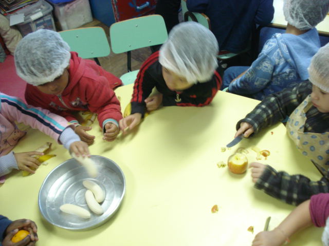 Dia 30/06 a Comunidade Evangélica Luterana São Miguel de Dois Irmãos realizou sua Festa da Colheira lembrando as bênçãos de Deus derramadas sobre aqueles irmãos. Novamente e de forma generosa, reuniram alimentos industrializados, frutas e verduras e destinaram para a AELCA. Após Culto de Gratidão, cuja mensagem foi dirigida pelo Pr Davi Schmidt, que junto com o Pr Oscar Zimmermann, cuidam desta comunidade, representantes da Diretoria da AELCA e seu pastor dirigiram-se aos congregados. E recberam os donativos trazendo-os para a instituição. Durante a semana, uma das formas de aproveitamento das doações foi através do partilhar das frutas entre as crianças. Algumas fizeram salada de frutas, conforme foto abaixo. Com a ajuda de todos fica mais fácil atender, e com qualidade, nosso público alvo.