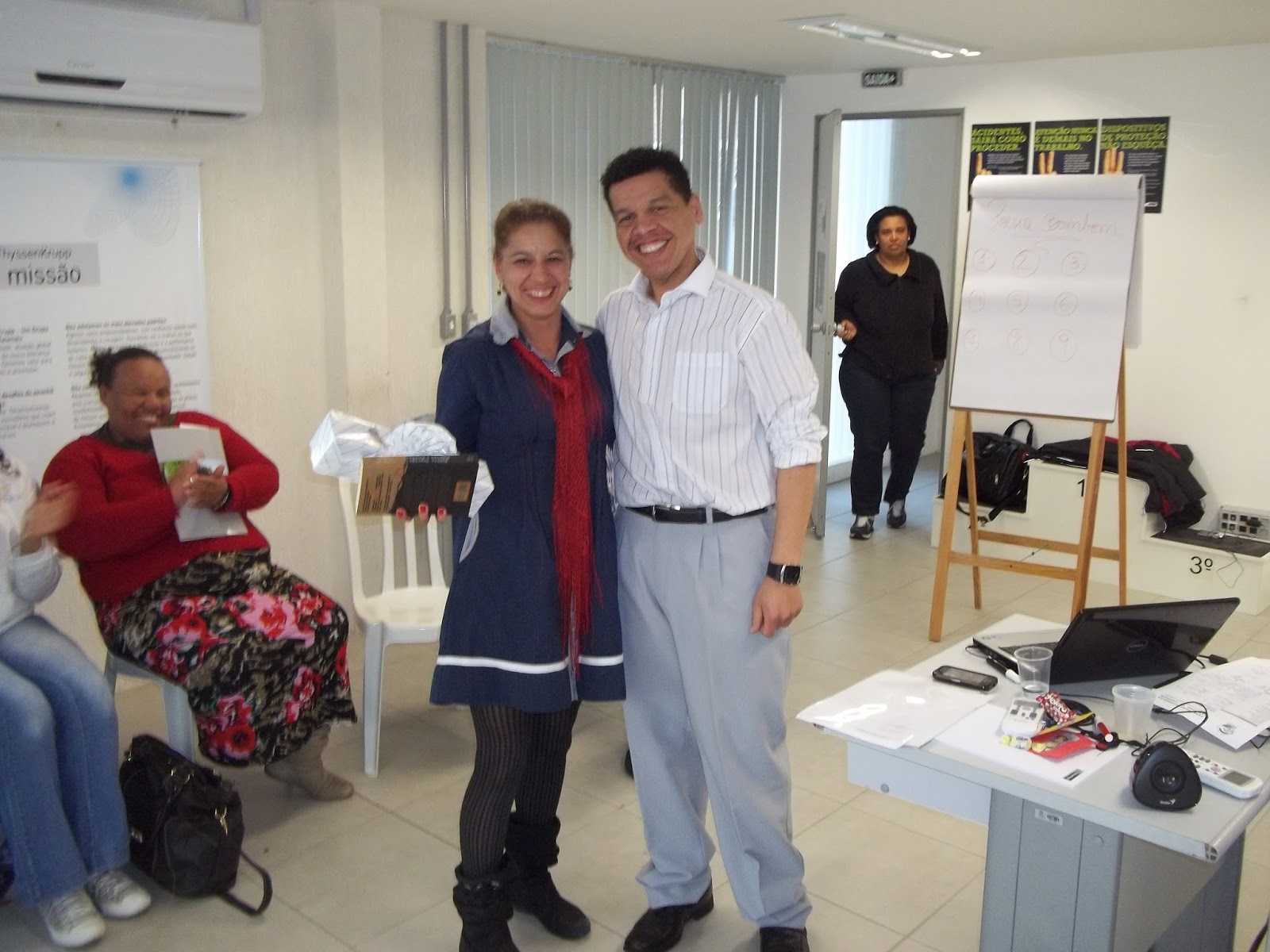 Enquanto trabalhávamos, a sempre atenta e carinhosa equipe da ThyssenKrupp Elevadores, nos dava suporte. Ao lado a Béti, nos trazendo água.