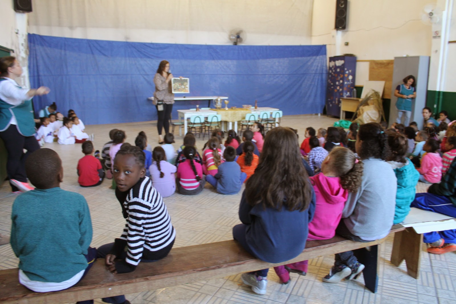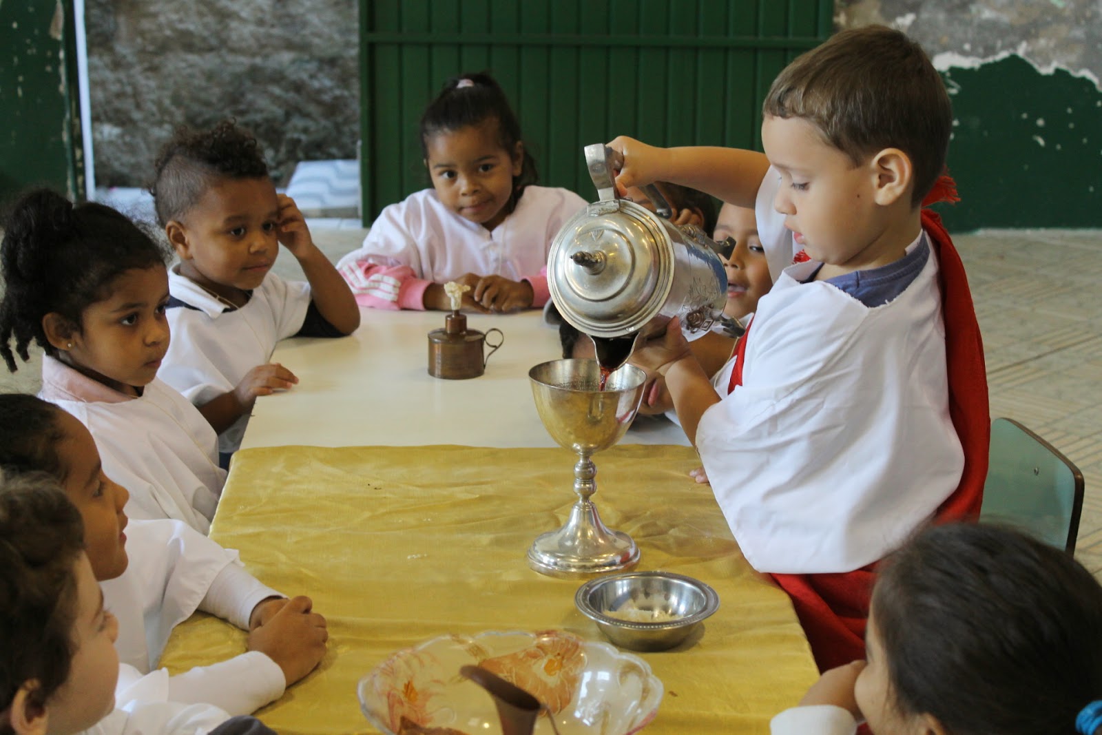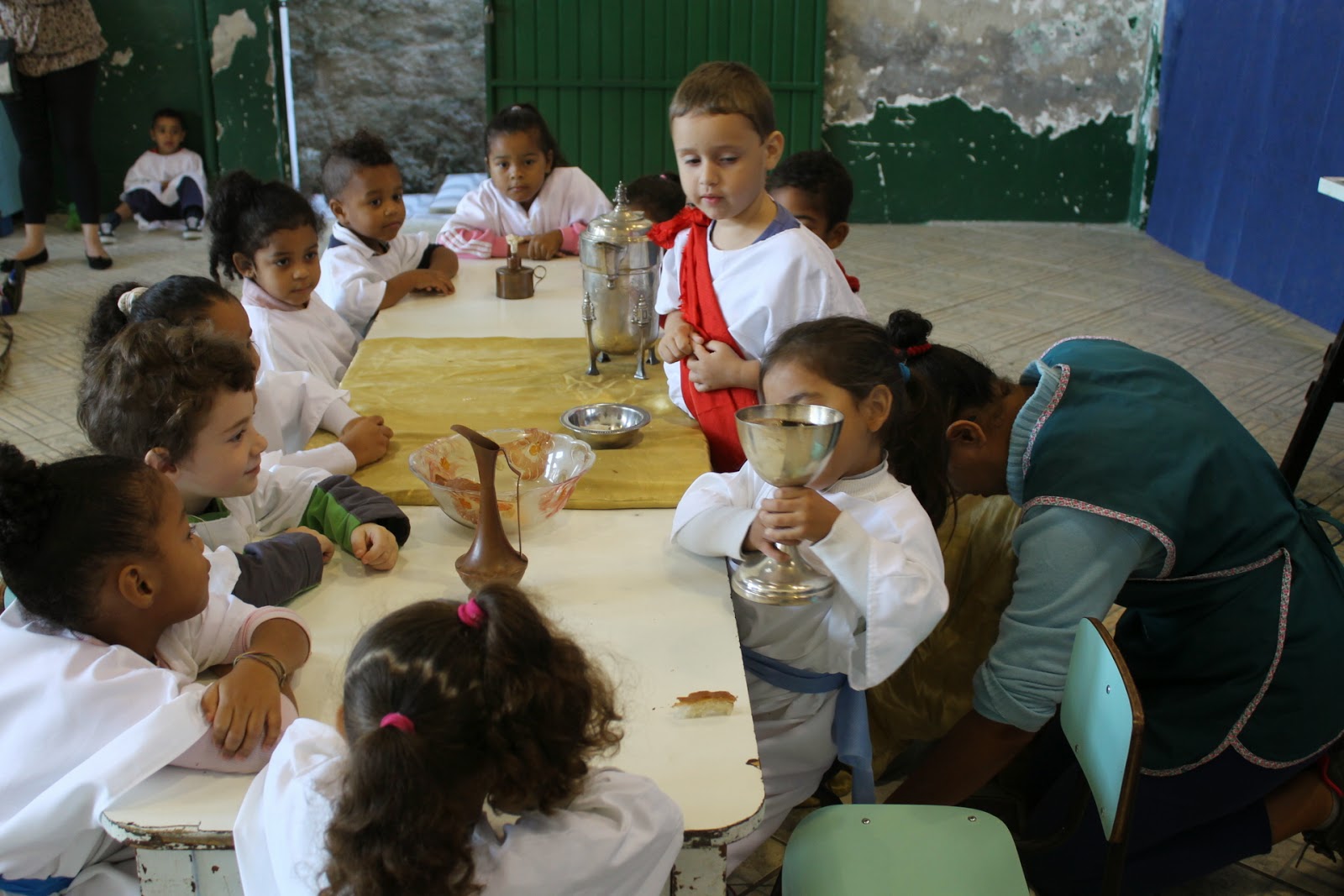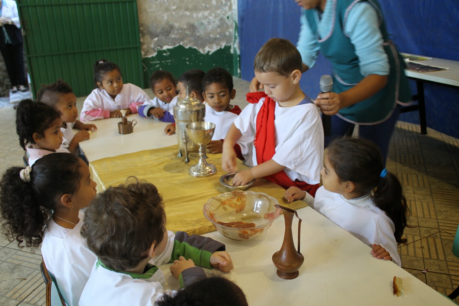 Hoje as crianças do Jardim A fizeram uma bela apresentação. Orientados pela Professora Letícia, as crianças encenaram a Santa Ceia, instituida por Jesus na Quinta-feira Santa(Veja em sua Bíblia Mateus 26.26ss). O momento foi muito significativo. Com pão e suco de uva, as crianças relembraram para todos o amor de Deus presente na Santa Ceia. A encenação encerrou no “Jardim do Getsêmani”, quando Jesus suou lágrimas de sangue devido a angustia pelo que lhe haveria de suceder. Mas a continuação fica por conta de outro grupo.