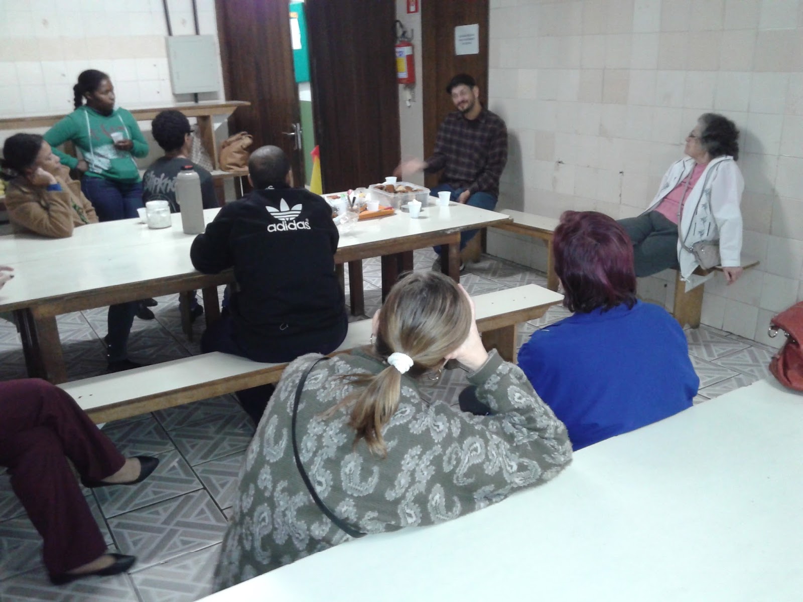 | Ao fundo, o Regente Abner compartilhando experiências. Um ponto em comum entre a maioria dos presentes: integram a Igreja Luterana por Profissão de Fé. Um motivo de darmos graças a Deus. |