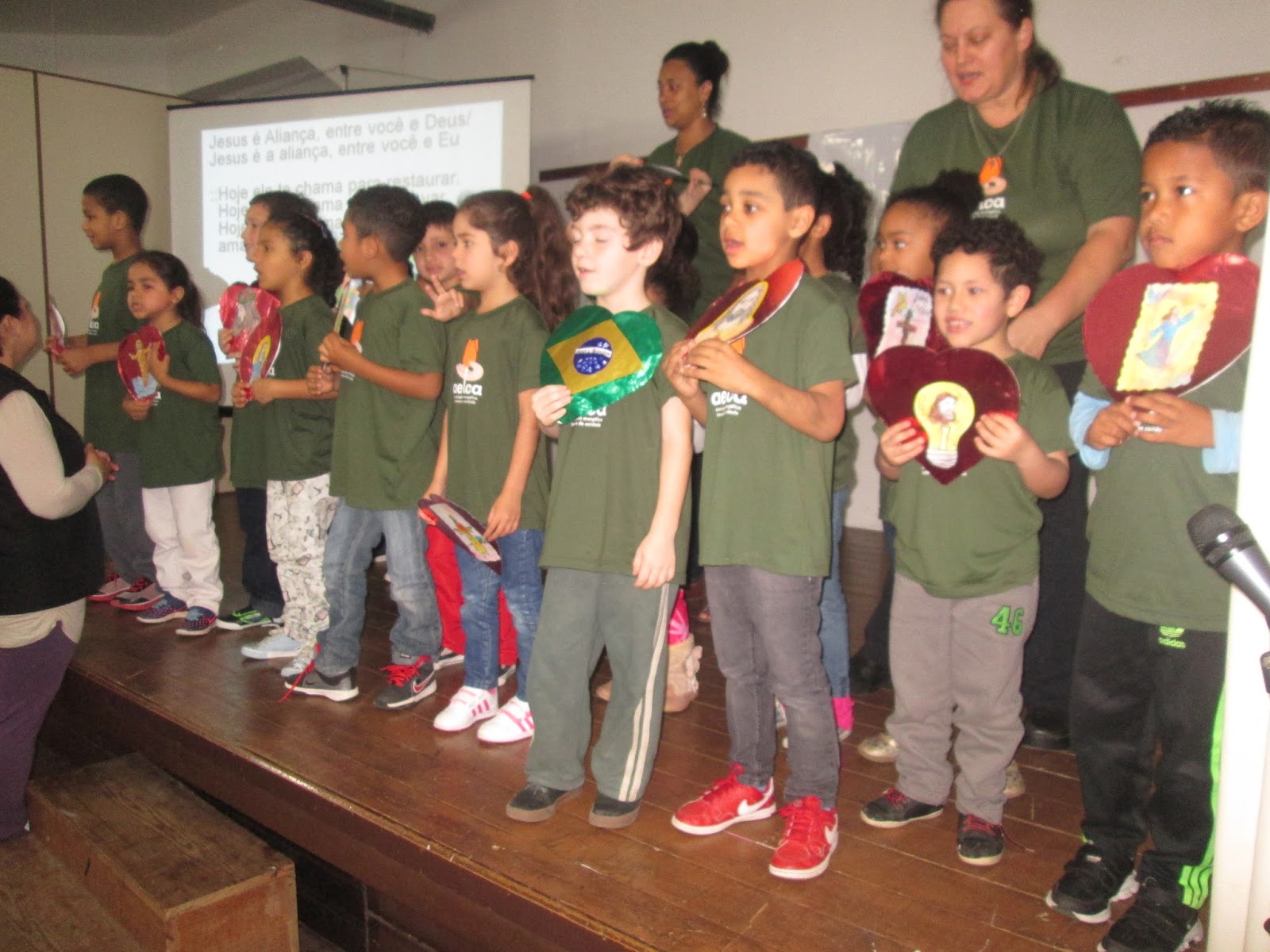 Apresentação do JB que emocionou. Nas mãos um coração com Jesus de um lado e o Brasil de outro. Ideia da Prof Jô com a ajuda da Prof. Lu. |