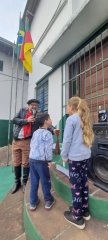 /0 Comentários/em Notícias /por Rodrigo PinheiroNa quinta tivemos hasteamento das Bandeiras e apresentações e na sexta, além disso, tivemos o nosso tradicional desfile. Momento mais uma vez prestigiado por nossos pais e responsáveis. Agradecemos a participação de todos. Também a comunidade local que sempre respeita e tem paciência com a saída das nossas crianças na nossa rua. Maternais apresentaram a dança do Pezinho; A turma C do Serviço de Convivência e Fortalecimento de Vínculos apresentou um pouco da história das etnias do gaúcho. Rio Grande: terras de muitas terras, tema dos festejos farroupilhas 2022.