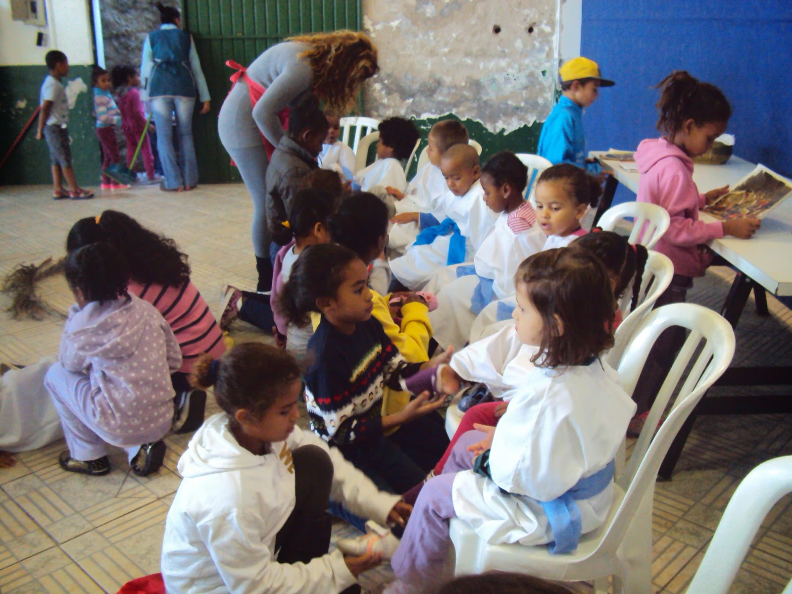 /0 Comentários/em Notícias /por aelcaNesta segunda-feira reiniciamos nossas comemorações da Semana Santa. A vez foi do Maternal 3 que apresentou o lava-pés. Coordenados pelas professora Nauri e Marla. Um momento impressionantemente lindo. Após a encenação, quando os artistas estava descalços, a Professora Lili teve a inspirada ideia de convidar os grandes do Serviço de Convivência a colocar neles os calçados. Foi um momento especial.